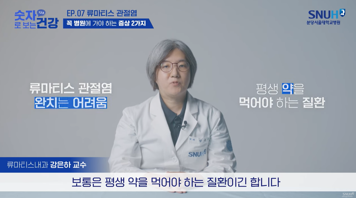 류마티스 관절염은 완치가 매우 어렵고 보통은 평생 약을 먹어야 하는 질환이라고 합니다.